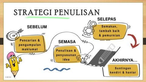 STRATEGI PENULISAN SELEPAS SEBELUM Semakan, tambah baik & pemurnian Pencarian & SEMASA pengumpulan maklumat Penulisan & penyusunan idea AKHIRNYA… Su n t in g an ken d iri & h an t ar HAR/KS
