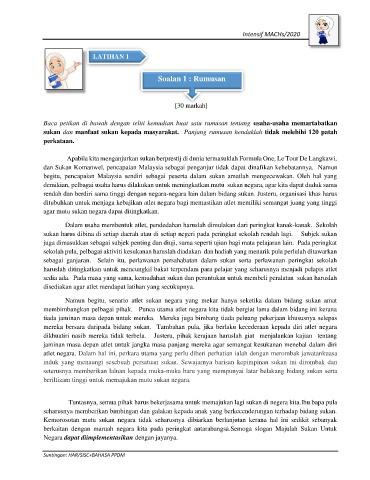 sukan dan manfaat sukan kepada masyarakat. Panjang rumusan hendaklah tidak melebihi 120 patah
