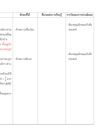 ตัวชี้วด/จุดประสงค์การเรียนร กิจกรรมการเรียนร ทักษะที่ได สื่อ/แหล่งการเรียนร การวัดและการประเมินผล