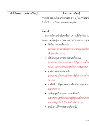 รอบวง และลากผ่านจุดศูนย์กลางของวงกลม)