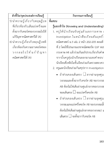 ตั้งฉากกับคอร์ดของวงกลมไปใช ้ 1. ครูให้นักเรียนจับคู่แล้วแจกกระดาษ A4 เพื่อทำ - ทักษะการสังเกต - หนังสือเรียนสัมฤทธิ์ - สังเกตพฤติกรรม