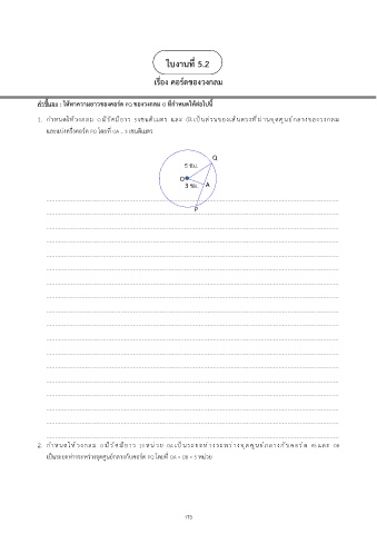 1. กำหนดให้วงกลม O มีรัศมียาว 5 เซนติเมตร และ OA ഥ เป็นส่วนของเส้นตรงที่ผ่านจุดศูนย์กลางของวงกลม