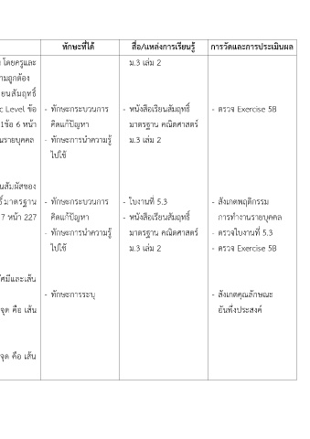 โดยครูตรวจสอบความถกต้อง - ทักษะการนำความรู้ มาตรฐาน คณิตศาสตร์ - ตรวจใบงานที่ 5.3
