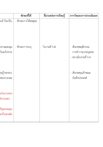 ครูให้นักเรียนทำใบงานที่ 5.4 เรื่อง มุมที่จุดศูนย์กลางและมุม - ทักษะการระบุ - ใบงานท 5.4 - สังเกตพฤติกรรม