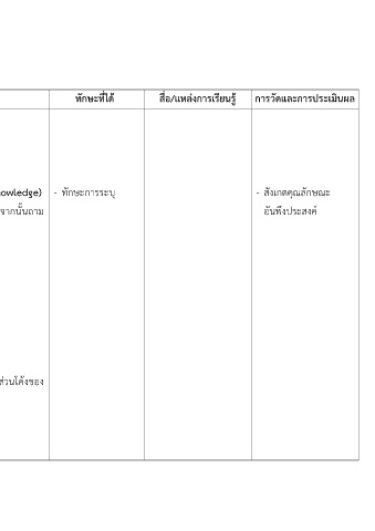 ตัวชี้วด/จุดประสงค์การเรียนร กิจกรรมการเรียนร ทักษะที่ได สื่อ/แหล่งการเรียนร การวัดและการประเมินผล