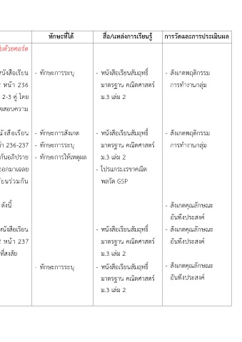 สัมฤทธิ์มาตรฐาน คณิตศาสตร์ ม.3 เล่ม 2 หน้า 236-237 - ทักษะการระบุ มาตรฐาน คณิตศาสตร์ การทำงานกลุ่ม