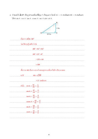 2. กำหนดให้ ∆DEF เป็นรูปสามเหลี่ยมที่มีมุม E เป็นมุมฉาก โดยมี AC = 15 เซนติเมตร BC = 8 เซนติเมตร