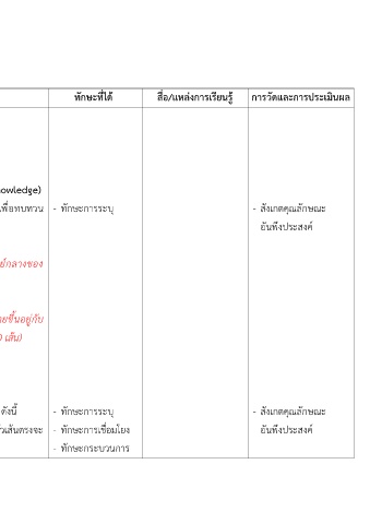 ตัวชี้วด/จุดประสงค์การเรียนร กิจกรรมการเรียนร ทักษะที่ได สื่อ/แหล่งการเรียนร การวัดและการประเมินผล