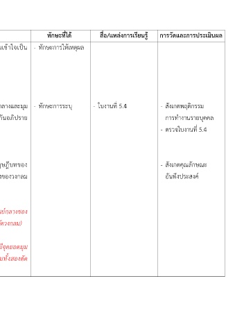ตัวชี้วด/จุดประสงค์การเรียนร กิจกรรมการเรียนร ทักษะที่ได สื่อ/แหล่งการเรียนร การวัดและการประเมินผล