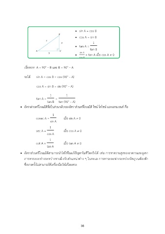 เนื่องจาก A = 90 – B และ B = 90 – A