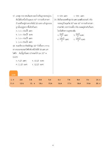 17. เอยสูง 160 เซนติเมตร มองไปเห็นลูกบอลอยู่บน ค. 520 เมตร ง. 530 เมตร