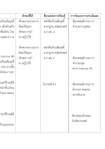 มาตรฐาน คณิตศาสตร์ ม.3 เล่ม 2 หน้า 161-162 จากนั้น - ตรวจ Exercise 4A