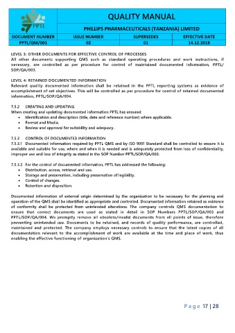 necessary, are controlled as per procedure for control of maintained documented information, PPTL/