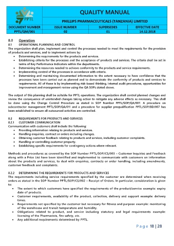 8.1 OPERATIONAL PLANNING AND CONTROL