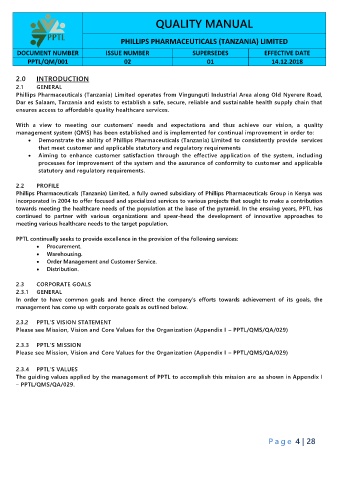 • Demonstrate the ability of Phillips Pharmaceuticals (Tanzania) Limited to consistently provide services
