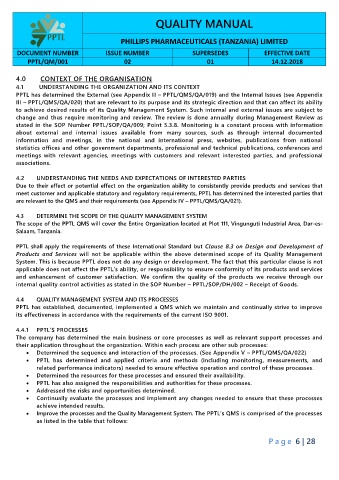 PPTL has determined the External (see Appendix II – PPTL/QMS/QA/019) and the Internal Issues (see Appendix