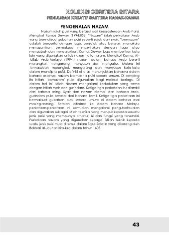 Mengikut Kamus Dewan (1994:858) “Nazam” ialah perkataan Arab