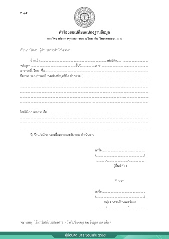หมายเหตุ : ใช้กรณีเปลี่ยนแปลงค าน าหน้าชื่อ/ชื่อ/สกุลและข้อมูลส่วนตัวอื่น ๆ