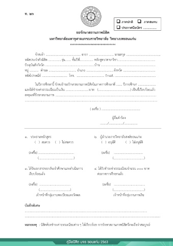 ในปีการศกษานี้ ข้าพเจ้าขอรักษาสถานภาพนิสิตในภาคการศึกษาที่ …….. ปีการศึกษา …….…..…………