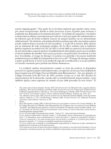 7 El Art. 427 del Código Procesal peruano señala: “Artículo 427.- Improcedencia de la demanda.