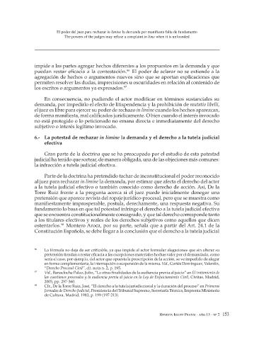 6.- La potestad de rechazar in limine la demanda y el derecho a la tutela judicial