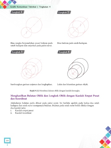 Menghasilkan Bulatan Oblik dan Lengkok Oblik dengan Kaedah Empat Pusat