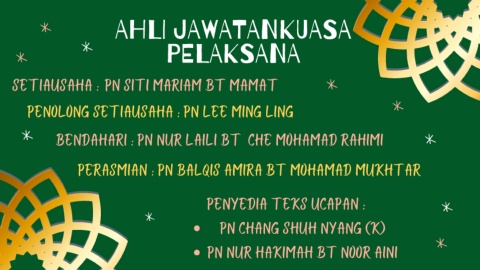 BENDAHARI : PN NUR LAILI BT CHE MOHAMAD RAHIMI