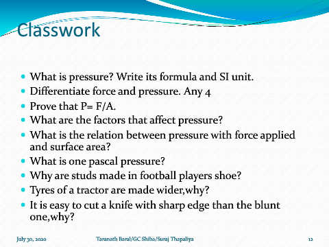 Differentiate force and pressure. Any 4