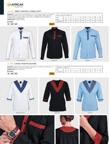 shweshwe detail • Dropped shoulder seams • Sleeve cuff with shweshwe binding detail Sizes S M L XL 2XL 3XL 4XL 5XL