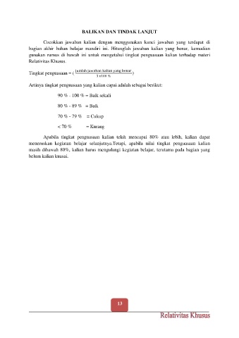 meneruskan kegiatan belajar selanjutnya.Tetapi, apabila nilai tingkat penguasaan kalian