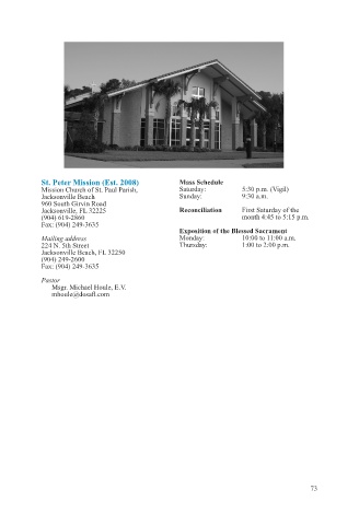 St. Peter Mission (Est. 2008) Mass Schedule