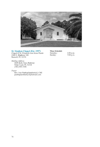 St. Stephen Chapel (Est. 1957) Mass Schedule