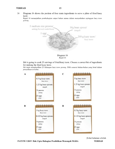 Rajah 16 menunjukkan pembahagian empat bahan utama dalam menyediakan sepinggan kuey teow
