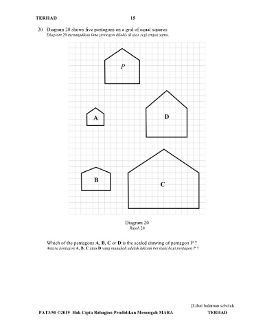 Antara pentagon A, B, C atau D yang manakah adalah lukisan berskala bagi pentagon P ?