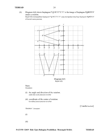 Rajah 6(b) menunjukkan heptagon P’Q’R’S’T’U’V’ yang merupakan imej bagi heptagon PQRSTUV