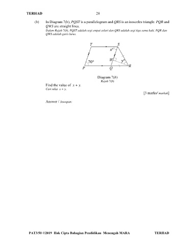 Dalam Rajah 7(b), PQST adalah segi empat selari dan QRS adalah segi tiga sama kaki. PQR dan
