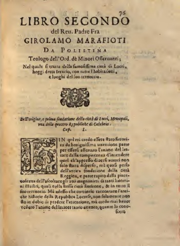 Dettorigine,e prima foadattone della cìttd di Locri^ Metropoli^