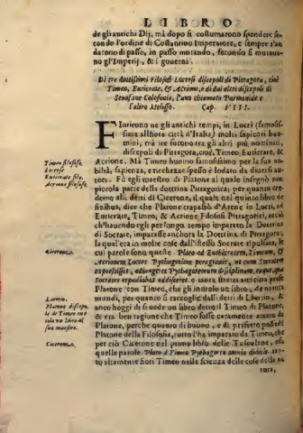 TìMm* difìrfo, anco hoggi di fi uede un libro dcttoil Timeo di Platone,