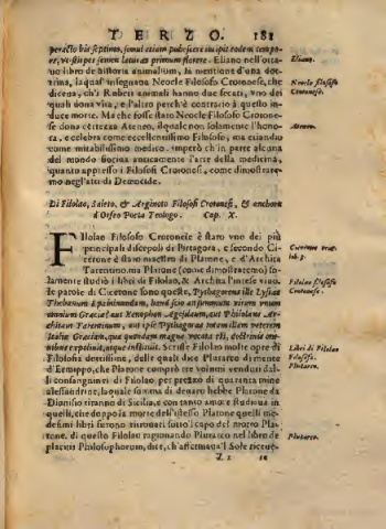 . jamente ftudiò i libri di Filolao,& Archita l’intefe viuo. Filtla» filafijò