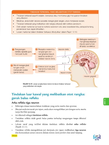 • Tindakan refleks ialah gerak balas pantas terhadap rangsangan tanpa dikawal