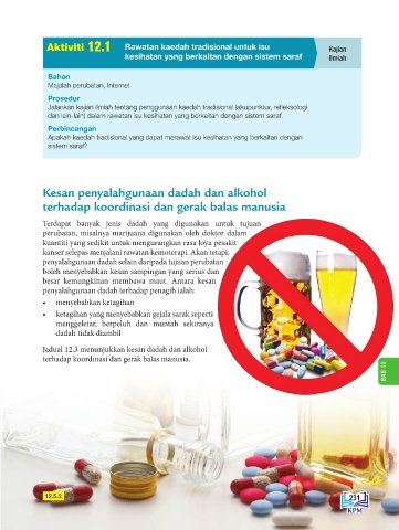 Jadual 12.3 menunjukkan kesan dadah dan alkohol
