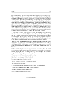 his neck. Opening a box, he spilt a cloud of scented powder. His hands were