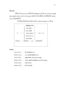 เม่อื ประโยค Active Voice มกี ริยาชวย (Helping Verb) คอื can, could, may, might,