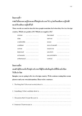 คาํ ตอไปนแี้ สดงความรูสึกของคนทไ่ี ปอยูต า งประเทศ ใหระบุวาคาํ ไหนเปนความรสู กึ ท่ีดี