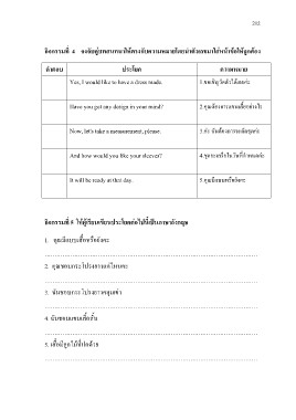 Yes, I would like to have a dress made. 1.ขอเชญิ วดั ตวั ไดเลยคะ