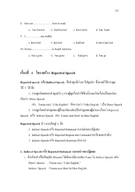 Reported speech หรอื Indirect Speech คือคาํ พดู ที่นําเอาไปพดู ตอ ซึง่ อาจมีวธิ กี ารพูด