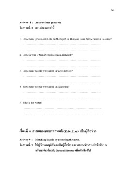กจิ กรรมที่ 9 ใหผูเ รยี นสมมตุ ติ ัวเองเปนผูส่ือชาว และรายงานขา วตามหัวขอขา งบน