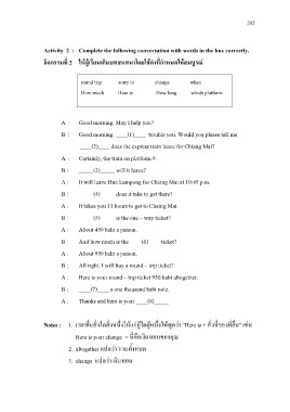 กิจกรรมที่ 2 ใหผ ูเรียนเติมบทสนทนาโดยใชคําทกี่ ําหนดใหส มบรู ณ