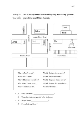 Activity 3 : Look at the map and fill in the blanks by using the following questions