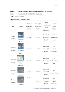 กิจกรรม 1 อา นการพยากรณอ ากาศตอไปนแ้ี ละตอบคาํ ถาม